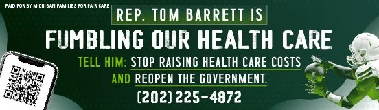 Congressman Tom Barrett promised to lower prices. Instead, he voted to cut health care and support tariffs that raise our costs. Michigan Families for Fair Care is working to demand Congressman Barrett stop supporting policies that hurt Michigan families.